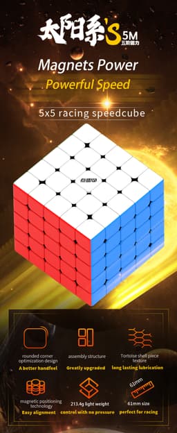 Expected delivery Sat May 16 2026The DianSheng Solar 5x5 M Plus (Black Internal) is a magnetic 5x5 with a mild magnetic sensation, bright stickerless shades, and an improved mechanism. This would be a fantastic choice if you're new to 5x5 or just starting out.