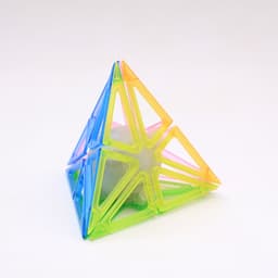 Expected delivery Mon May 18 2026With its entirely novel mechanism, the FangShi 2x2 Frame Pyraminx (Colorful Transparent) has an edge-turning pyraminx on a 2x2 ball core.