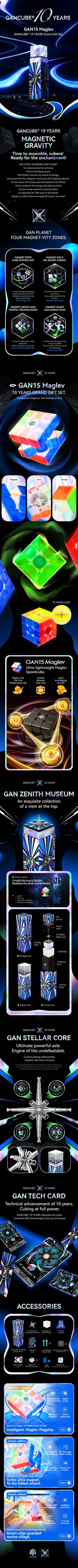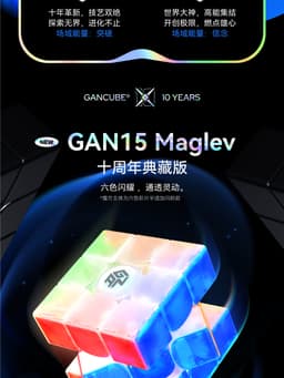 Expected delivery Fri May 01 2026The GAN 15 MagLev UV 3x3 - Limited Edition is a translucent plastic version of GAN's new flagship 3x3 model. This version celebrates GAN's 10-year anniversary and includes a limited edition sticker set (one side) and cube bag.