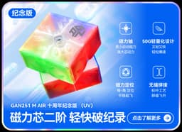 Expected delivery Fri Apr 24 2026The GAN 251M Air 10th Anniversary (Transparent) commemorates ten years of GAN's inventiveness and originality. In addition to offering the smooth, controlled performance cubers have come to expect from GAN designs, this incredibly lightweight 2x2 has a totally transparent, multicolored exterior that gives it a new, lively appearance. The GAN251 M Air provides a remarkable problem-solving experience right out of the box because to its excellent design, easy turning, and light magnetic feel. This version, which comes in a unique 10th Anniversary holographic packaging, blends performance and collectibility into a chic, unforgettable release.