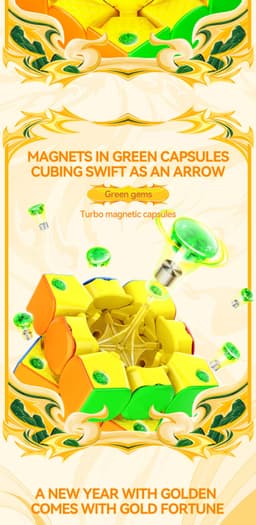 It includes bespoke stickers with adorable patterns, including a lively, cuddly snake mascot representing knowledge and wealth, surrounded by traditional Lunar New Year themes. Bright yellow internals and green magnet capsules offer a festive feel. Its smooth turning, robust construction, and appealing images make it ideal for solving, giving, or exhibiting.