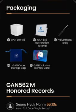 Expected delivery Tue Apr 07 2026The GAN562 M 5x5 (UV) is the first GAN 5x5 that features a UV coated surface with Ball-core features. This cube has 96 corner edge magnets, 16 core magnets, a honeycomb piece design, and a widened outer layer for better grip.