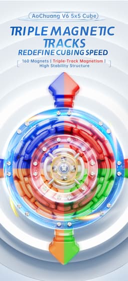 Expected delivery Fri May 15 2026An improved model of the flagship AoChuang WR M 5x5 is the MoYu AoChuang V6 5x5. Its magnetization scheme and mechanism are innovative. This is the Triple-Track + UV version which contains the corner/edge magnets, corner base/core magnets, and edge-to-edge base magnets, these extra magnets aid with stability and give it a stronger magnetic feel.