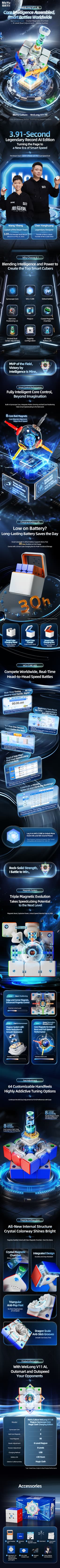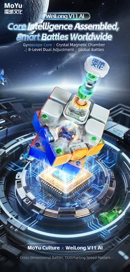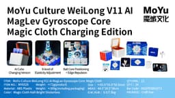 Expected delivery Wed May 06 2026The MoYu WeiLong V11 AI 3x3 Maglev Gyroscope UV (Stickerless) is a smart cube that combines state-of-the-art hardware with smart cube capabilities. With its MagLev tensioning and a smooth UV-coated surface, it provides top-tier performance while connecting to your device via the free WCU CUBE app for real-time metrics, lessons, and tracking.