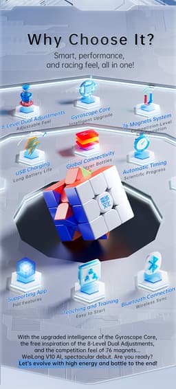 Expected delivery Sat May 02 2026A new smart cube called the MoYu Weilong V10 AI 3x3 (Standard) is based on the WeiLong V10, which is MoYu's most recent flagship product. This puzzle has piece-to-piece magnetization, and edge repulsion magnets for auto-alignment. There are 76 magnets in all! It features eight tension adjustment settings and the same incredible corner cutting as the original WeiLong V10.