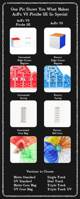 Expected delivery Tue May 12 2026The Picube AoFu V5 SE UV - Stickerless is a UV-coated surface 7x7 big cube. Built for fast, smooth, and controllable solves with excellent corner-cutting and consistent alignment. Suitable for competitive speedcubers and dedicated practice.