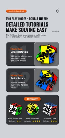 Expected delivery Sun Apr 12 2026With its crazy-looking gears that spin and revolve as you move the puzzle, the QiYi 2x2 Gear Cube (Black) adds a playful twist to the traditional 2x2. It offers a completely different approach to solving since each rotation moves every piece simultaneously. For collectors, casual cubers, or anybody else looking to add something distinctive and striking to their shelf, this is a fantastic choice. Cool design combined with smooth turning.