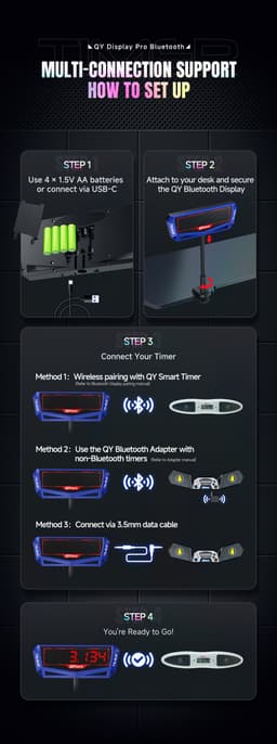 Expected delivery Sat Apr 11 2026The world's first commercially accessible wireless Bluetooth timer display made especially for speedcubers, the QiYi Bluetooth Display Pro (Blue), will elevate your cubing sessions and contests. This cutting-edge accessory makes sure your solve times are constantly in the spotlight, whether you're training at home or organizing a high-stakes competition.