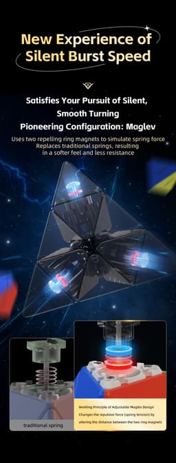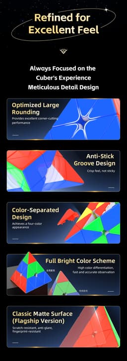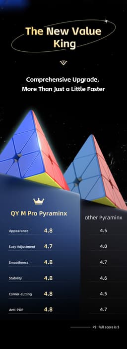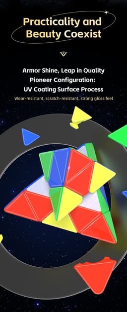 Expected delivery Tue May 12 2026The QiYi M Pro Pyraminx Pioneer UV - Stickerless is a competition-grade pyraminx featuring UV-coated surface. Engineered for fast corner-first solving with precise alignment and excellent corner-cutting. A reliable choice for both WCA competitors and pyraminx enthusiasts.