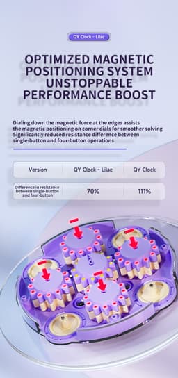 Expected delivery Fri May 15 2026The QiYi Magnetic Clock (Lilac) features a new magnet scheme and is available in a stunning lilac hue. The revised magnet arrangement ensures more consistent rotations regardless of how many pins are up.