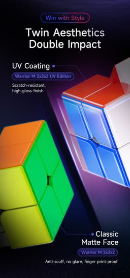 Because it is UV coated, this QiYi Warrior 2x2 M UV (Stickerless) has a glossy exterior that improves grip and looks great!