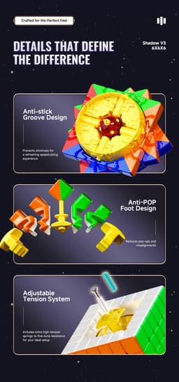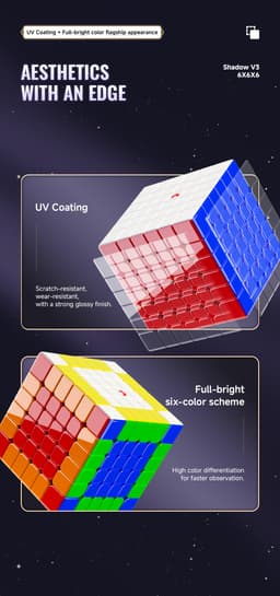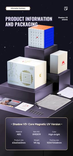 Expected delivery Fri May 15 2026The XMD Shadow 6x6 V3 Ball Core UV (Stickerless) offers excellent performance together with a neat, well-designed appearance. It has a complete magnet architecture for steady, dependable turning and a magnetic ball core for improved alignment and stability during quick solves. The puzzle maintains its sharp appearance and resists wear thanks to the glossy feel added by the UV-coated surface. Straight out of the box, it's stable, smooth, and ready for competition.